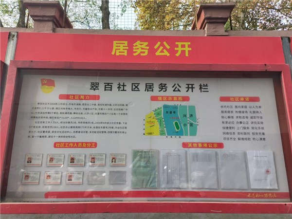 一是強化黨建引領,提高思想認識。翠百社區高度重視居務公開工作,成立“居務公開”工作領導小組,社區書記是第一責任人,并安排專人負責,確保責任落實到位,完善相關配套機制,努力提升居務公開工作水平。