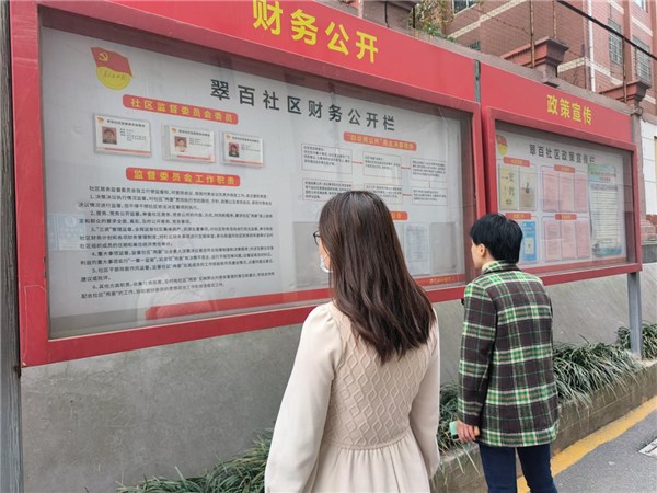 三是強化規范運行,接受居民監督。翠百社區遵循內容全面、程序規范、居民滿意的原則,做到固定內容長期公開,常規工作定期公開,階段性工作逐段公開,臨時性工作及時公開,確保公開信息的經常性、動態性及時性和有效性。同時,結合文明創建和全員核酸檢測等契機,開展基層小微權力“監督一點通”平臺注冊推廣,暢通監督渠道,增強社區居務工作透明度。