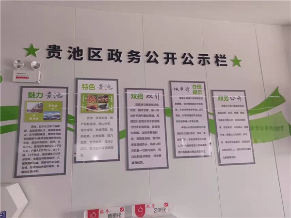 依據國辦及省、市政務公開工作相關文件精神,我區深入開展全面推進基層政務公開標準化規范化工作,積極探索區級政務公開模式。借助貴池區政務服務大廳搬遷為契機,貴池區全面升級區級政務公開專區。貴池區在結合本地區實際的基礎上在專區設立依申請公開受理、政策解讀咨詢、政府信息查詢、政策咨詢綜合服務、公眾意見征集與等候休息五大功能區,同時還設計了內容豐富、造型美觀且富含地區特色的文化墻。