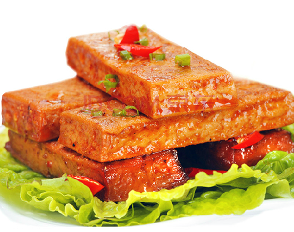 陵陽豆腐干,是青陽縣傳統小吃,歷史悠久。制作工藝是:精選優質黃豆,經過泡發、濾漿、成型、鹵制等十幾道工序精制而成。陵陽豆腐干色澤烏黑光亮,醬香濃郁,口味鮮美,咸淡適宜,質地板而不結,厚薄均勻。