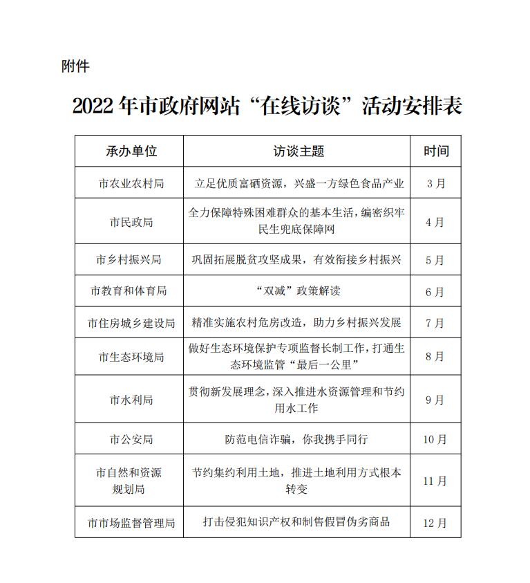 附件:2022 年市政府網站“在線訪談”活動安排表