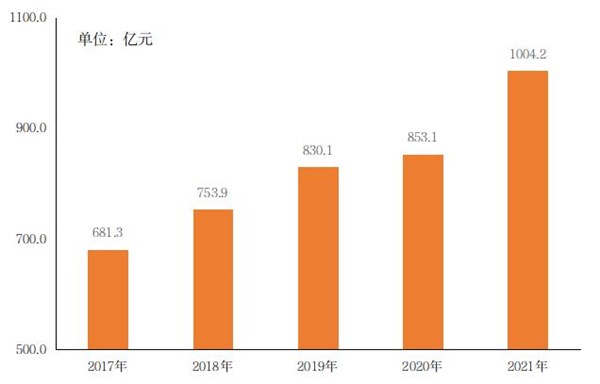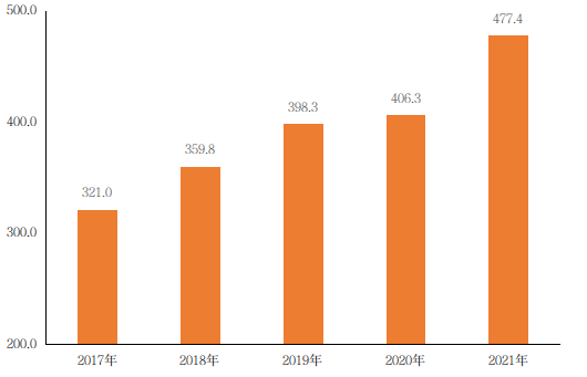 2017—2021年全市社會(huì)消費(fèi)品零售總額