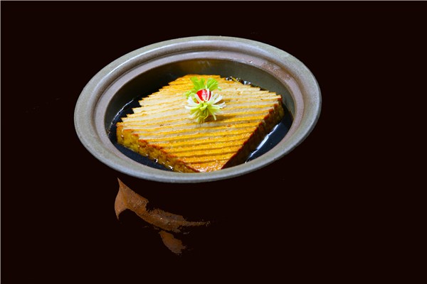 1.石磨泉水豆腐經過大廚定型打花刀;