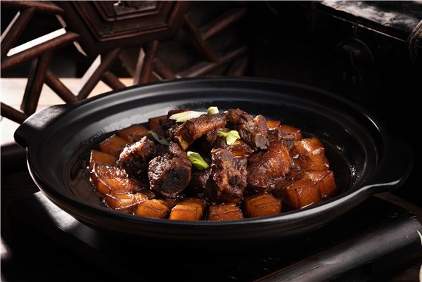 3.轉入炒鍋中,倒入老抽,中火燒三十分鐘至湯汁收濃;