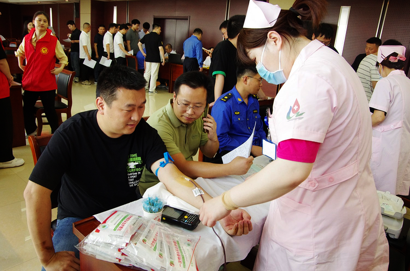 5月24日,集中區組織干部職工開展無償獻血活動。活動當天,該區近百名干部職工踴躍參與,累計獻血近20000毫升。圖為活動現場。