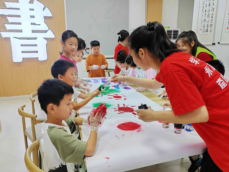 為豐富社區青少年的暑假生活,貴池區清溪街道翠屏苑社區新時代文明實踐站聯合池州學院開展為期兩周的暑期課堂志愿服務活動。期間,大學生志愿者除了輔導孩子們寫作業,還開設了繪畫、圍棋、科普等特色課程。圖為7月20日,志愿者在教孩子涂鴉繪畫。