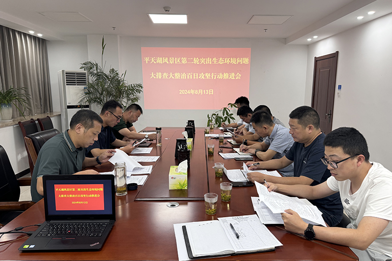 2024年8月13日下午,平天湖風景區召開第二輪突出生態環境問題大排查大整治百日攻堅行動推進會。區黨工委委員、管委會副主任鮑楠出席會議并講話,管委會相關處室主要負責人參加會議。
