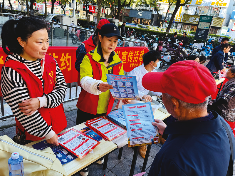 為弘揚中華民族勤儉節約的優良傳統,引導廣大居民群眾積極踐行文明、健康、綠色的生活方式,近日,貴池區秋浦街道孝肅社區在主城區銅鑼灣廣場開展“崇尚節約、反對浪費”主題宣傳活動。 記者 杜龍菲 攝