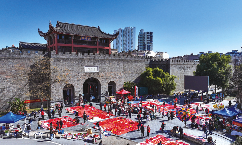 隨著農(nóng)歷蛇年春節(jié)到來,池城的大街小巷處處洋溢著喜慶的氛圍。圖為主城區(qū)秀山門廣場前市民購買年俗用品。記者 吳駿 攝
