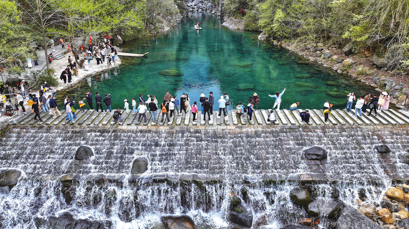 寧靜古樸的村落、清脆蒼郁的古樹、嵯峨光怪的險峰、飛瀉如練的瀑布……4月16日,位于石臺縣境內的牯牛降風景區青山環繞,綠水長流,宛如人間仙境。暮春四月,這片被譽為“皖南小九寨”的“綠野仙蹤”迎來了一波波客流高峰。