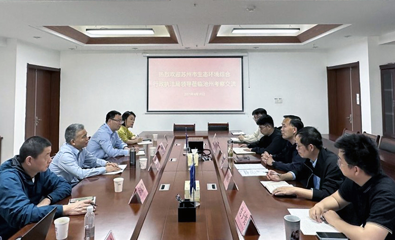4月18日,蘇州市生態環境綜合行政執法局副局長李安康一行來我市就生態環境執法工作開展交流座談,市生態環境保護綜合行政執法支隊副支隊長景照華、相關科室負責人參加座談。