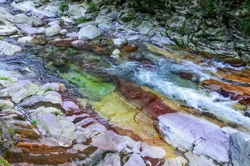 如果說水是七彩玉谷的靈,那么石便是它的骨。沿谷而行,隨處可見被水長期沖刷的河床,大石與小石彼此依偎、層層疊疊,像一支沉默的軍隊,手拉手、肩并肩,任憑狂風驟雨、山洪奔涌,也難以撼動它們眾志成城的陣勢。它們經歷過地殼裂變、巖漿奔突、歲月剝蝕,卻依舊堅毅如初,美麗如初。地質學家稱它們為“會思考卻沉默不語的大自然精靈”,我更愿視之為山谷里的花朵——不喧嘩,不招搖,只在漫長時光里,把每一次沖刷當作雕琢,把每一次碰撞當作磨礪。它們把堅韌寫在肌理里,把從容刻在輪廓上:有的如屏如壁,鎮守谷口;有的如砥如柱,撐起水脈;有的如卵如丸,隨波逐流卻從不迷失方向。它們見證億萬年的風云變幻,也見證每一個在谷中駐足的人——有人為色彩而來,有人為水聲而來,有人為光影而來,而我,為它們堅韌不拔的品格而來。