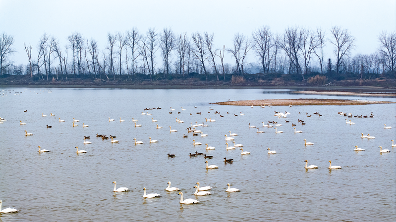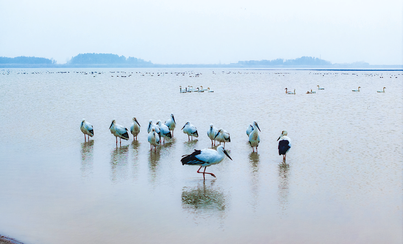 1月2日,貴池區(qū)十八索自然保護區(qū),東方白鸛、小天鵝、白琵鷺、白額雁等候鳥在灘涂濕地棲息、覓食。 十八索自然保護區(qū)濕地生態(tài)環(huán)境優(yōu)越,每年都會吸引數萬只候鳥在此停歇越冬。隨著氣溫持續(xù)降低,珍稀候鳥成群結隊翩然而至,萬鳥翔集的壯觀場景再次上演,整個濕地進入了最佳觀鳥期。