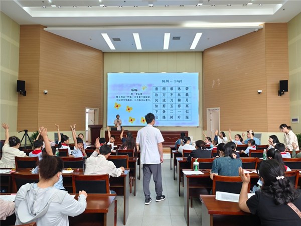 活動中,心理治療師楊玉潔帶來的心理團輔課程《抓住我的專注力——注意力提升訓(xùn)練營活動計劃》成為一大亮點。課程以熱身活動開啟,引導(dǎo)學(xué)生和家長迅速進入專注狀態(tài)。隨后楊老師從眼到、耳到、手到、心到四個維度切入,巧妙融合講課與游戲,并引入積分制,瞬間點燃了學(xué)生和家長的參與熱情。在游戲環(huán)節(jié),大家全身心投入,積極思考,親子間的默契不斷升溫,在輕松愉悅的氛圍中,注意力得到了有效鍛煉。