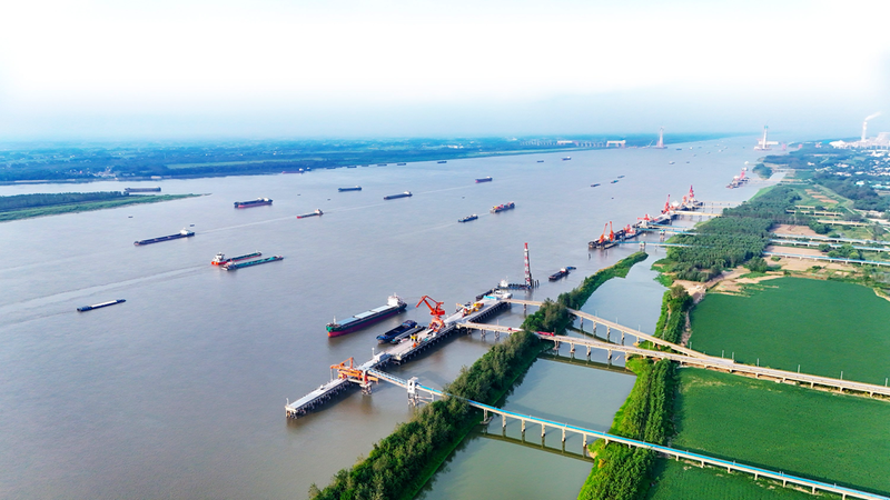 圖為池州港江口港區(qū)航拍。 記者 張延鶴 攝
