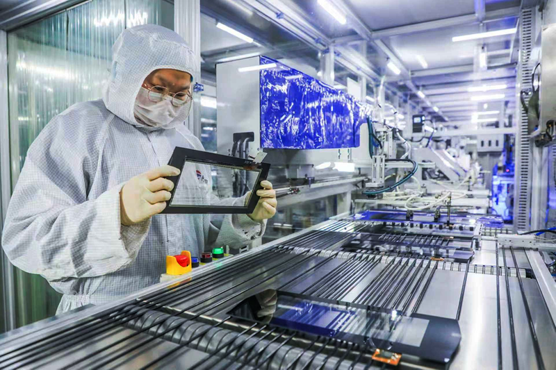 據了解,同池科技今年還將與臺灣上市公司在池州經開區半導體特色生態產業園落地OLED液晶面板項目,計劃于年內實現試投產。該項目致力于生產更高端的OLED面板產品,投產后將填補我市在顯示面板前端制造領域的空白。圖為同池科技車載全貼合車間計時人員正在檢驗產品。