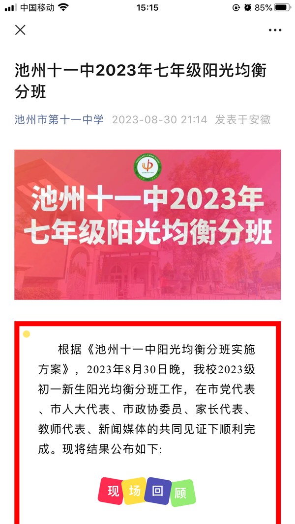 池州十一中2023年七年級(jí)陽光均衡分班