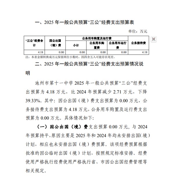 池州市第十一中學(xué) 2025 年一般公共預(yù)算“三公”經(jīng)費(fèi)預(yù)算