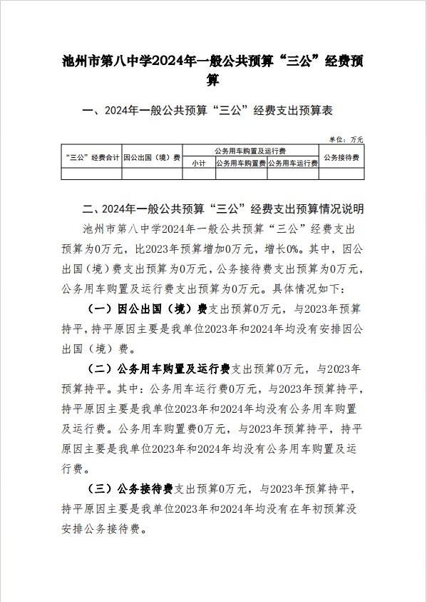 池州市第八中學(xué)2024年度單位一般公共預(yù)算財政撥款“三公”經(jīng)費預(yù)算情況說明